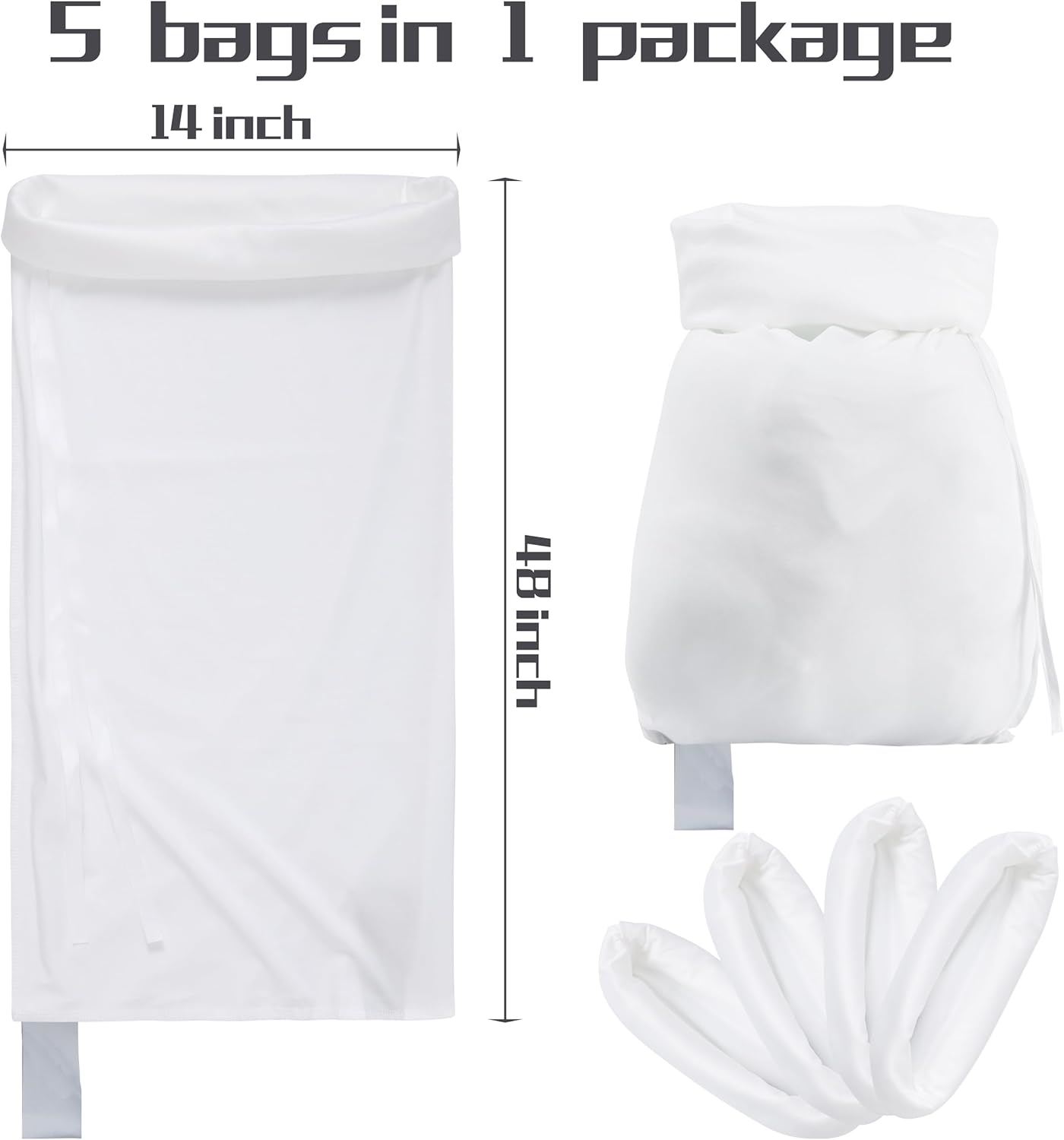 Complete set of 5 Configurations:Includes 4 x 12 “x48” elk meat bags and 1 x 12 “x28” gut bag. Sized to fit different parts of the game. Comes with 5 drawstrings to securely tie each bag.
